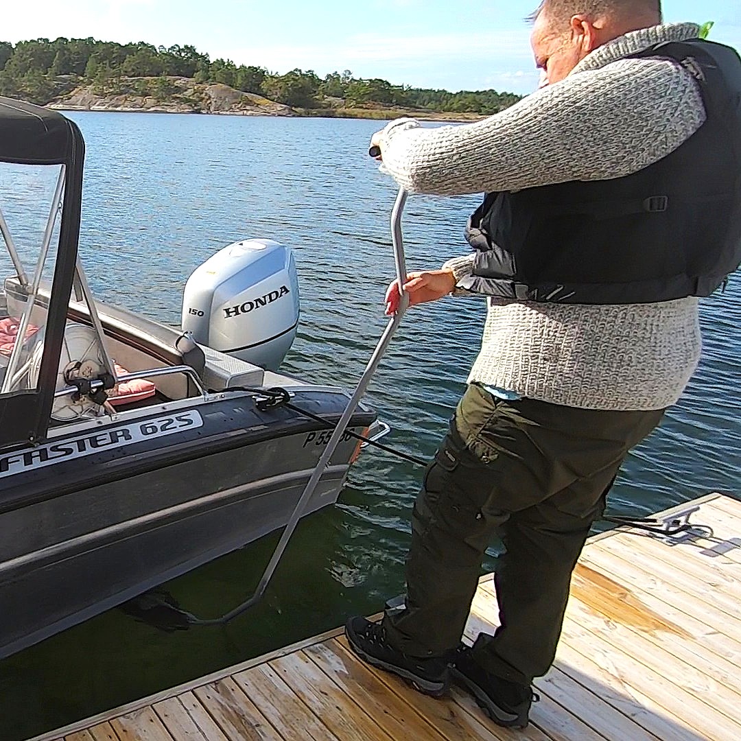 Sopii parhaiten alle 4,5 m leveiden veneiden harjaukseen. Alumiininen varsi Ø 28 mm on muotoiltu parhaan ulottuvuuden saavuttamiseksi. Vartta voidaan käyttää 2-4 osassa. Käytä lepuuttajaa, tai 1-2 tyhjää kanisteria kellukkeena. Suositeltava kelluke on enintään ~ 12 litraa. Käytä ilman kelluketta pystysuorille pinnoille, kuten peräpeilille ja kölille. Mukana on 400 mm leveä harja kasvustolle ja 250 mm leveä raappa merirokoille.
